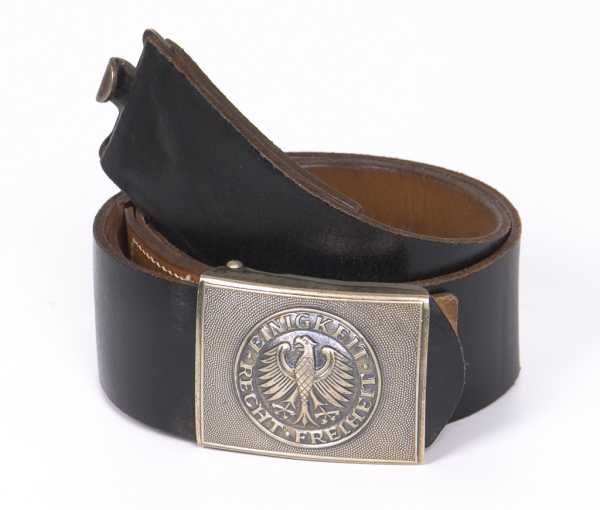 Lederkoppel (Dienstkoppel) der Bundeswehr für die Teilstreitkräfte Heer und Luftwaffe, Metallschloss mit Bundesadler und der Aufschrift "Einigkeit und Recht und Freiheit".
